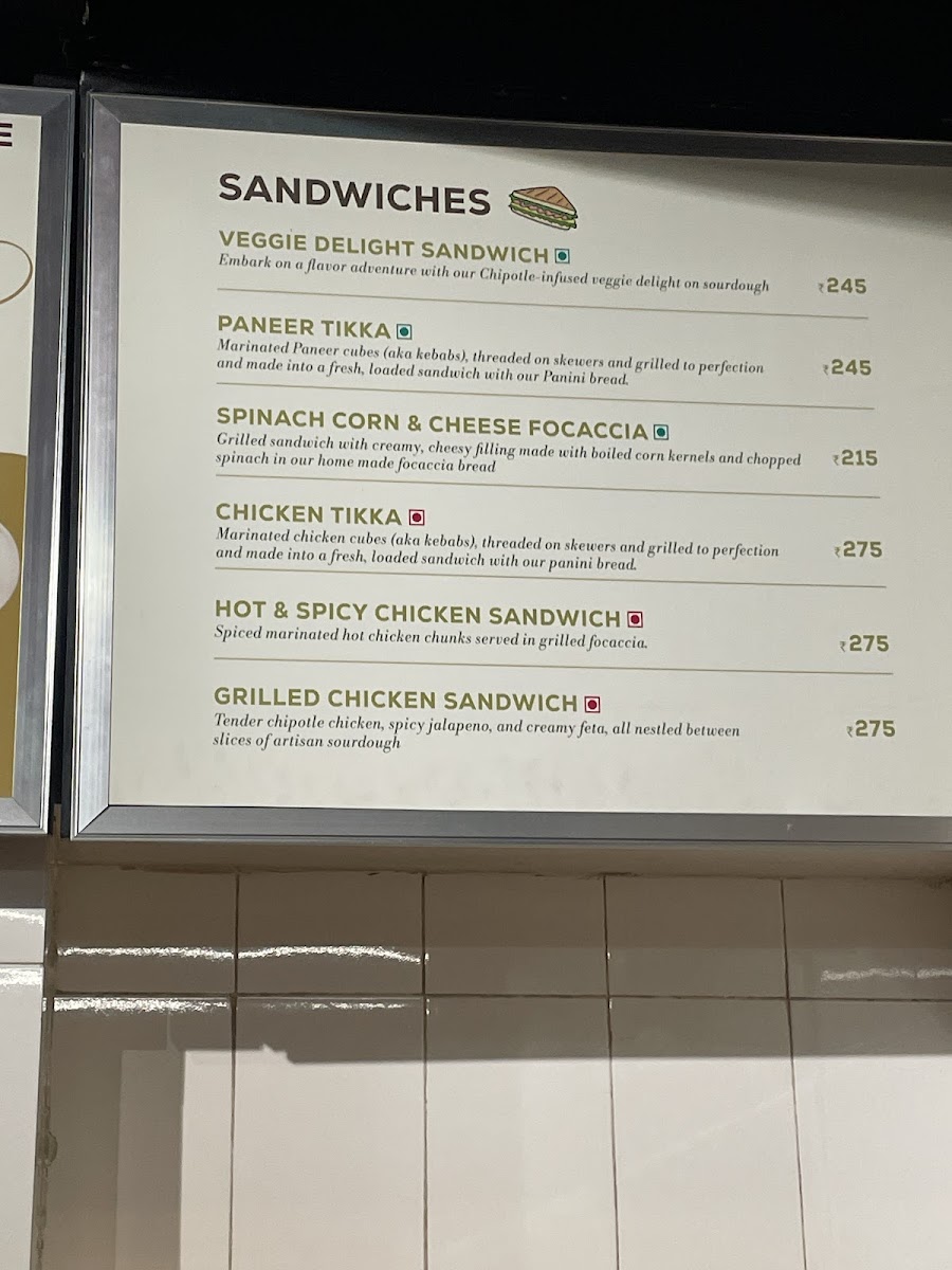 A delightful combination of fresh vegetables sandwiched between soft bread and paired perfectly with your choice of refreshing beverages.