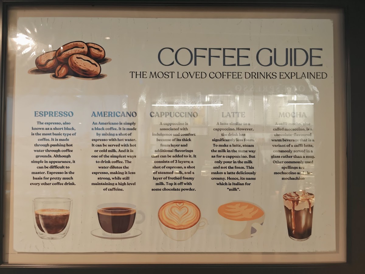 The perfect blend of freshly brewed espresso, steamed milk & milk foam.